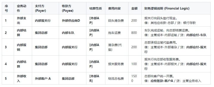 典型业务场景:一票进口业务,总部接单,分派给内部车队运输、内部报关行报关。报关行代垫了外部码头的港杂费。
